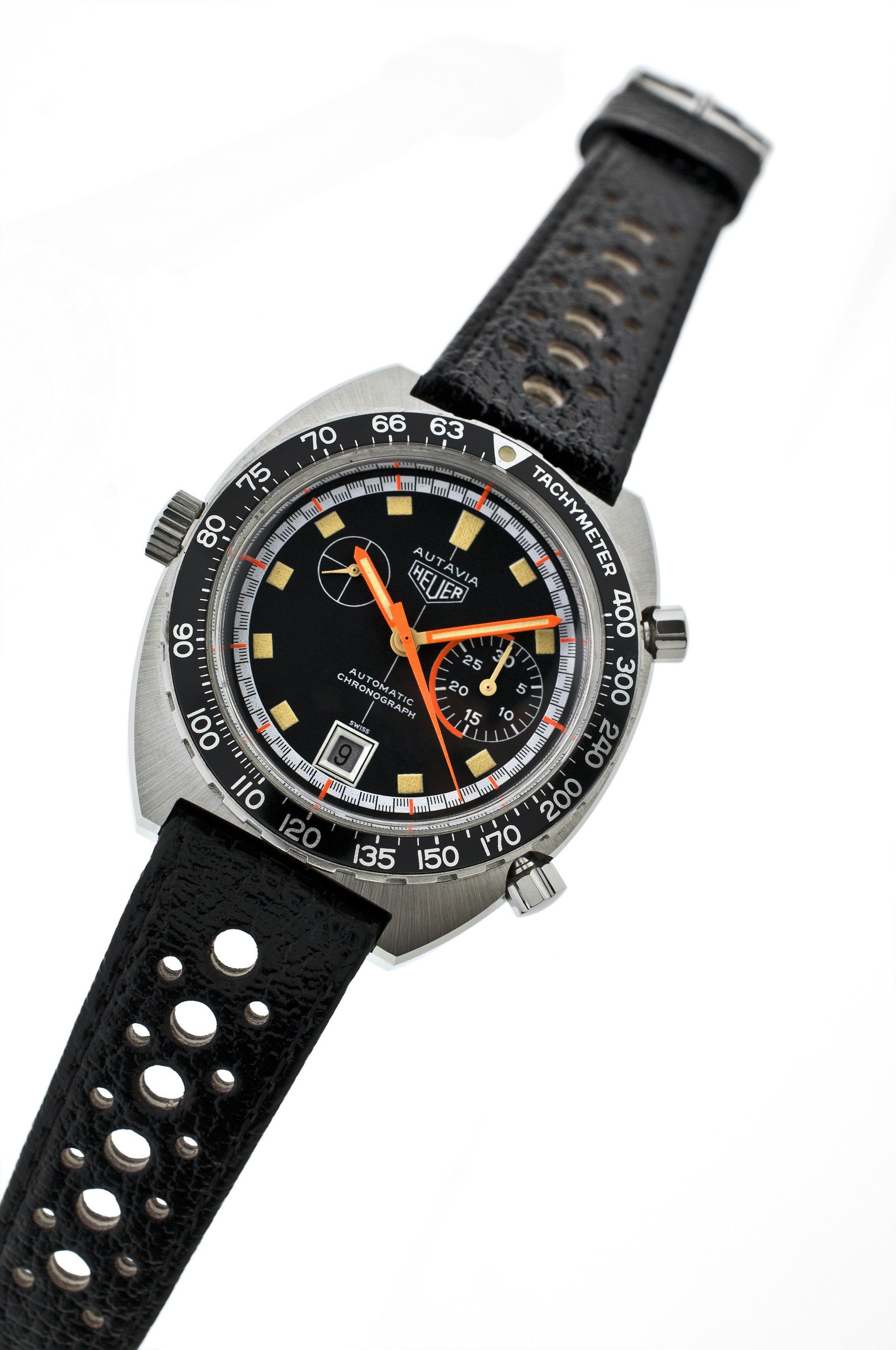 The cushion case Autavia launched in 1969 and was to be the last Autavia case used during the Heuer years. It was adapted to take different movements and to withstand greater depths of water submersion but carried through the design on all variants until 1985.